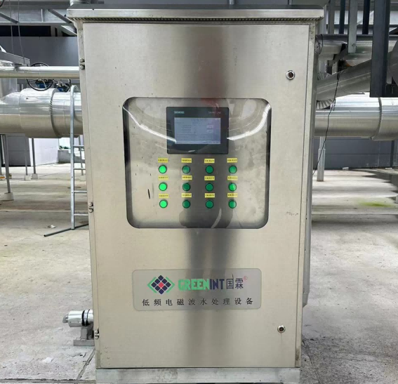 设备运用特定频率范围的交变脉冲电磁波对循环水进行处理,激励水分子产生共振,增强水的内部能量,促使在冷却水中形成无附着性的文石及在钢铁表面形成磁铁层,解决结垢和腐蚀问题。同时特频电磁波能对微生物产生影响,拟制微生物的滋生繁殖。设备根据在线监测的关键水质参数,自动控制冷却水的排污。
